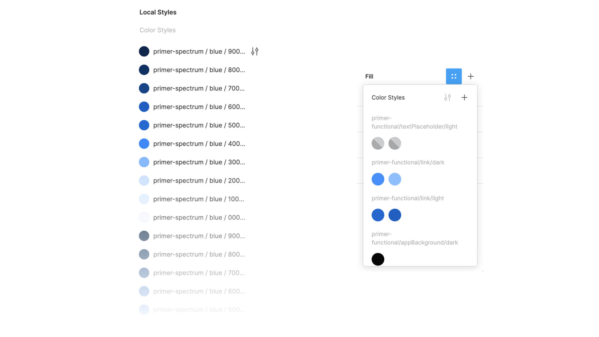 With a few dozen functional colors, extended from the base set of a few hundred core colors, I was suddenly dealing with a lot of color styles in my document. So the next plugin ran colors through a pipeline that ensured that my mobile colors extended Primer, and that my functional colors were always derived from the spectrum palette.