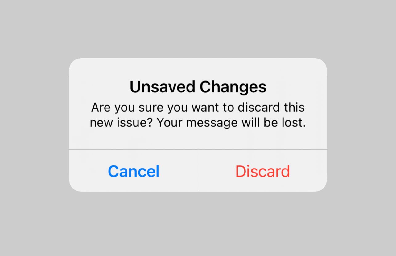 - Warning people when they are about to lose draft state – this usually happens when people are closing a dialog, or trying to navigate back, where that action would cause any unsaved changes to be lost.