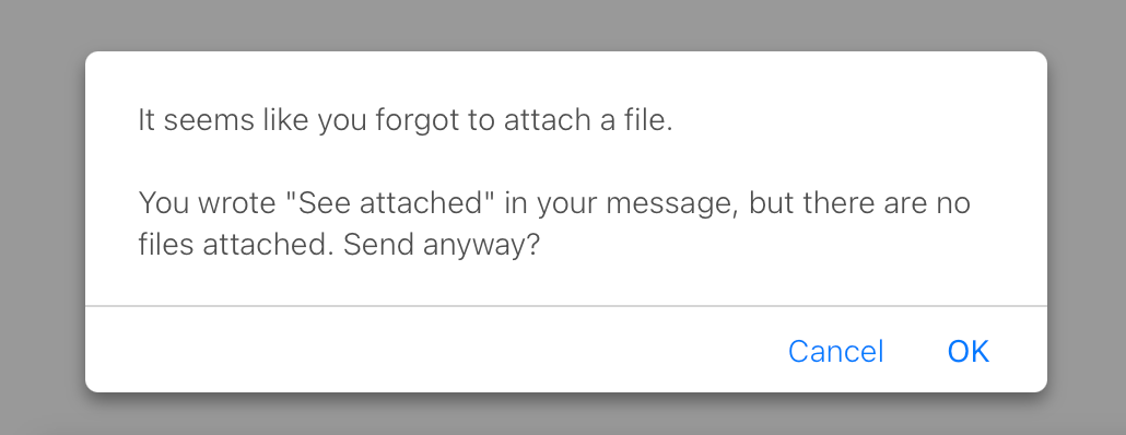 Have you ever sent an email where you meant to attach a file, but just the act of typing "see attached" made you forget to actually attach the thing? Apparently this happened to enough people so that Gmail now looks for key phrases in a draft like "see attached" – if the email itself doesn't have an attachment, they will prompt for a confirmation before sending.