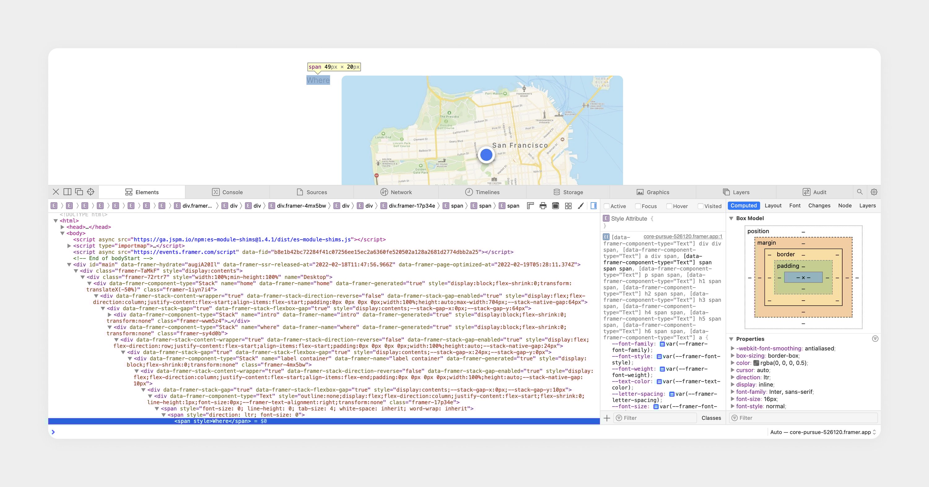 Does this matter? Honestly, maybe not. I think developers will care if they can be bothered to inspect element and see what's going on under the hood, but I suspect that as long as a Framer Site's output is fast enough, that no customer will ever notice.