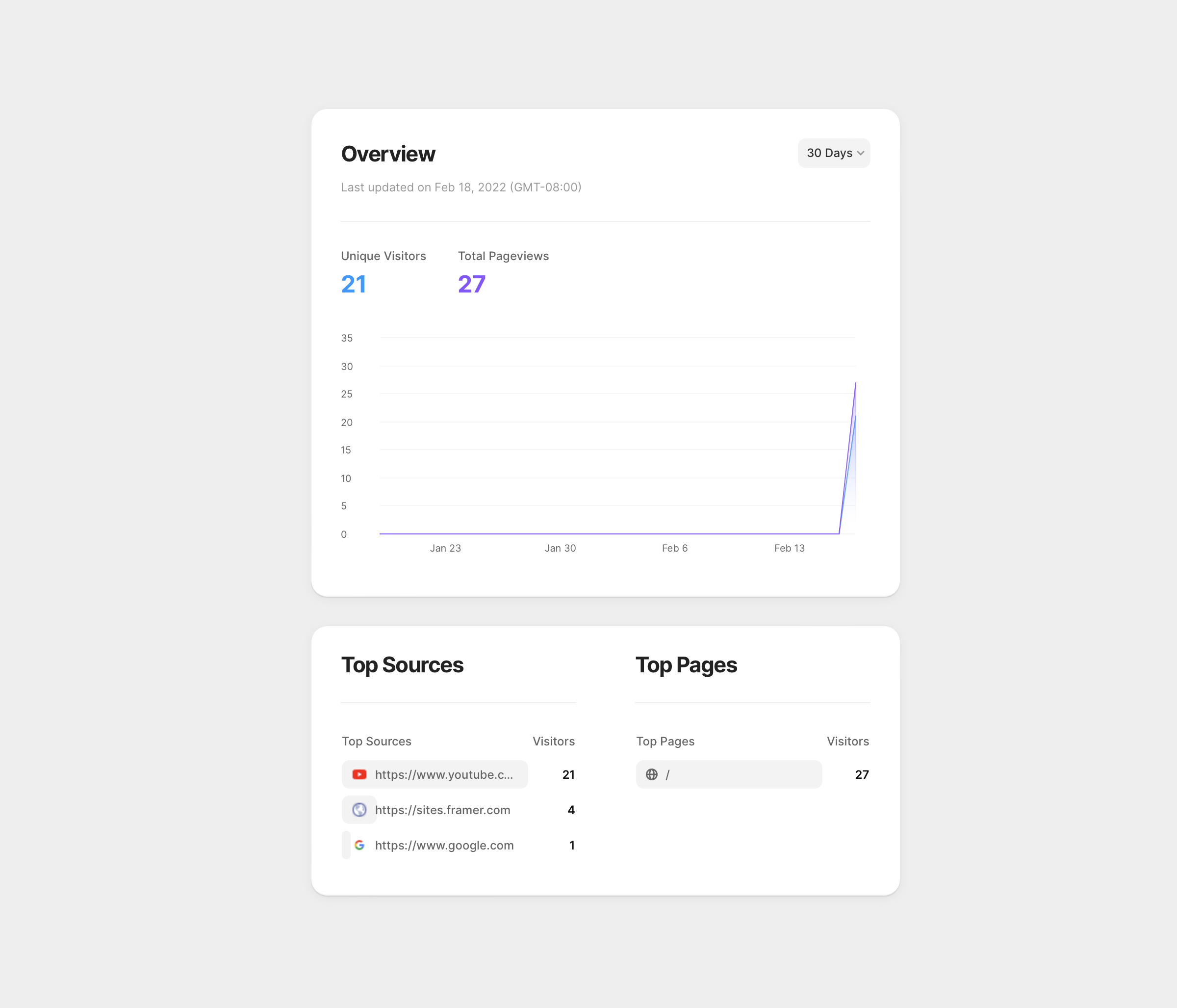 Framer is simplifying all of that, and bringing site configuration directly into the editor. While today's version of site analytics and deployment history feel like a v1 (e.g. it doesn't look like it's possible to revert to a previous deployment, even though they're all technically available), it's clear to see the ambition here: Framer Sites will become a proper end-to-end site builder and manager.